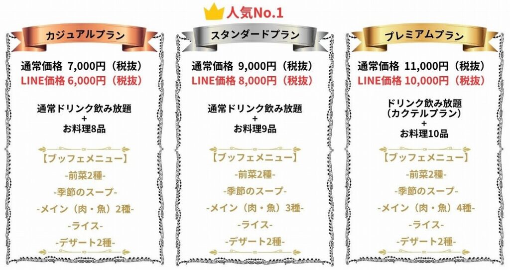 パーティーは、3つのプランをご用意しております。